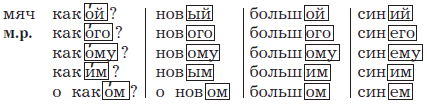 Прочитай. Поставь ударение в именах прилагательных. Сравни окончания слов-вопросов и имён прилагательных. Что ты заметил? Попробуй сформулировать правило.