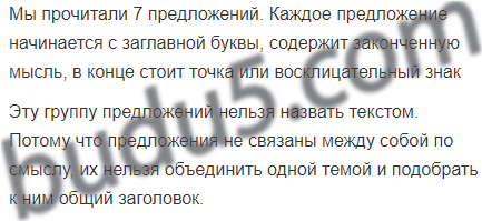 Прочитай. Сколько предложений ты прочитал? Как ты это определил? Можно ли назвать эту группу предложений текстом? Почему? Назови признаки текста.
