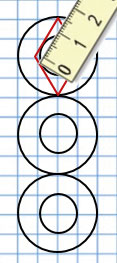 3. Расположи ромбы так, чтобы верхний и нижний его углы касались большой окружности, а стороны - маленькой.