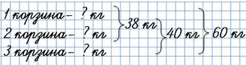 1) 60 - 38 = 22 (кг) - в третьей корзине.