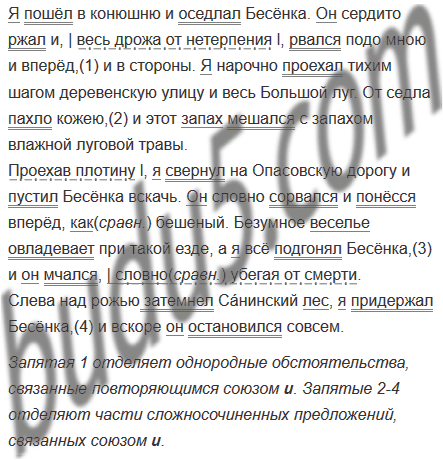 Слева над рожью затемнел Са́нинский лес я придержал Бесёнка и вскоре он остановился совсем. (По В. Вересаеву)
