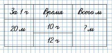 154. Экскаватором можно выкопать за 1 ч канаву длиной 20 м. Одну канаву копали 10 ч, а другую - 12 ч. Найди общую длину канав, которые выкопали за это время. Реши задачу разными способами. Сравни их и выбери самый удобный.
