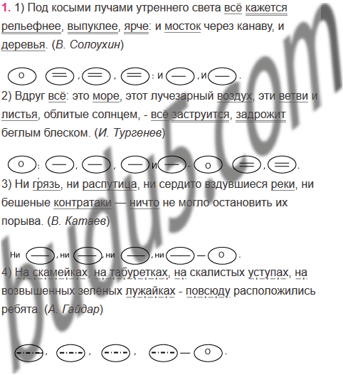 1. Спишите, вставляя пропущенные знаки препинания и составляя схемы однородных членов предложения. Прочитайте предложения, соблюдая правильную интонацию.