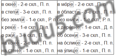 Запишите слова в две колонки, вставляя пропущенные буквы. Во всех словах поставьте ударение, в скобках укажите тип склонения и падеж.