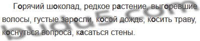 Г..рячий ш..колад, редкое р..стение, выг..ревшие волосы, густые зар..сли, к..сой дождь, к..сить траву, к..снуться вопроса, к..саться стены.