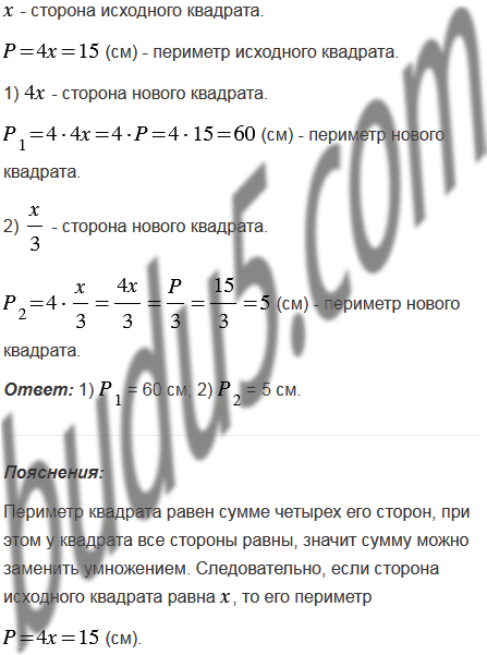 Периметр квадрата равен 15 см. Чему станет равным периметр квадрата, если каждую из его сторон: