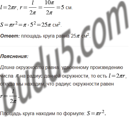 Найдите площадь круга, если длина его окружности равна 10 см.