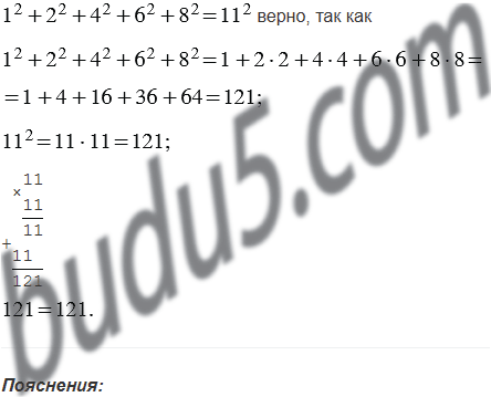 Докажите, что 12 + 22 + 42 + 62 + 82 = 112.