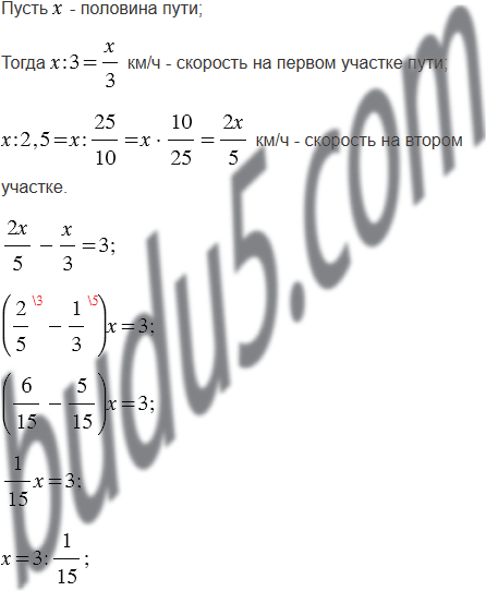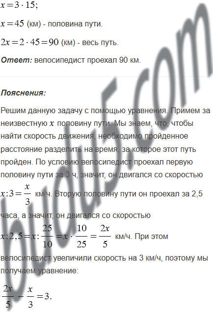 Велосипедист проехал первую половину пути за 3 ч, а вторую - за 2,5 ч, так как увеличили скорость на 3 км/ч. Какое расстояние проехал велосипедист?