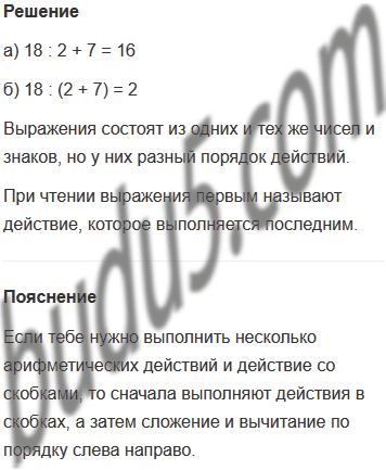 Задание № 10. Составь выражения и сравни их. Какое действие называют первым при чтении выражений?
