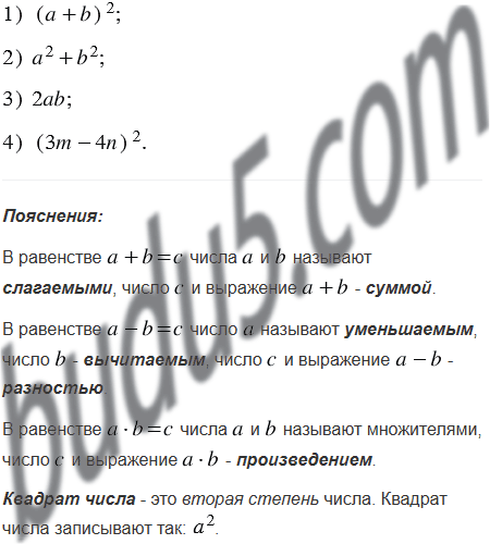 1) квадрат суммы чисел
