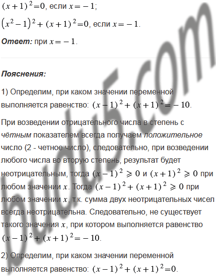 При каком значении переменной выполняется равенство: