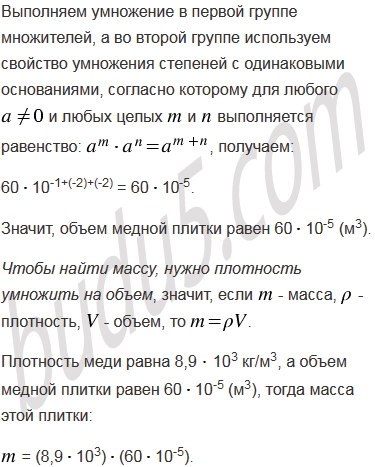 Плотность меди равна 8,9103 кг/м3. Найдите массу медной плитки, длина которой 2,510-1 м, ширина - 12 см, а высота - 0,02 м.