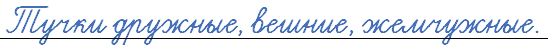 1. Дождик, ветер, снегопад с неба кубарем летят. (В. Степанов) 2. Тучки дружные, вешние, жемчужные мчатся надо мной. (А. Фет) 3. Лес зазвенел, застонал, затрещал. (Н. Некрасов)