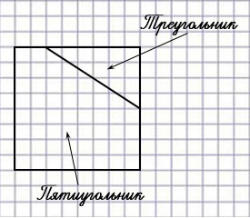 2. Начерти квадрат со стороной 4 см. Проведи в нем один отрезок так, чтобы получился пятиугольник и треугольник.
