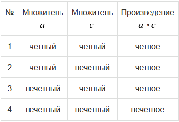 | 1 | четное | четный | |