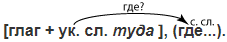 СПП с придаточными места: 1) Алексей пополз туда, где теперь уже совсем ясно были различимы звуки канонады. (Б. Полевой)