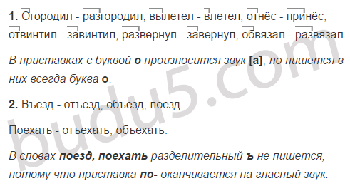 2. Образуйте однокоренные слова с приставками от-, об-, по-: въезд - ..., поехать - ... . Запишите. В каких словах не нужно писать разделительный ъ? Почему?