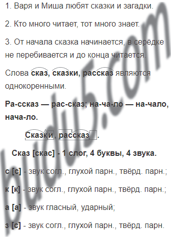 сказки, рассказ - выдели части слов